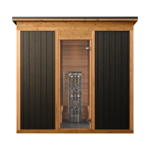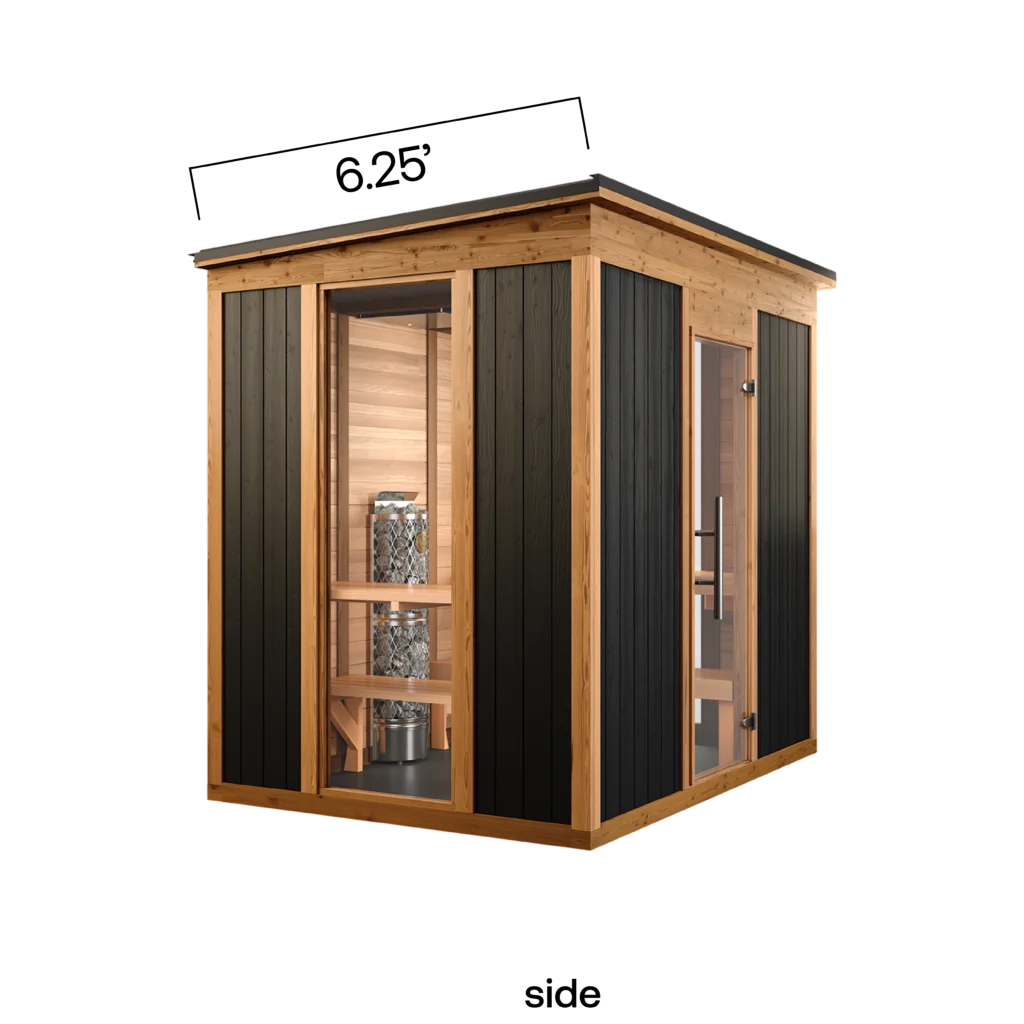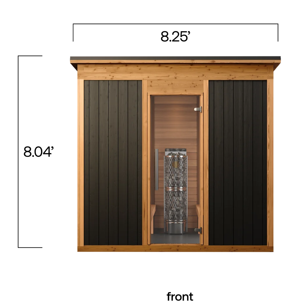 Sleek and contemporary, the Modern Mod6 Sauna pairs minimalist architecture with brushed Ignite cladding, Pine posts, and a smooth, thermally modified alder interior.