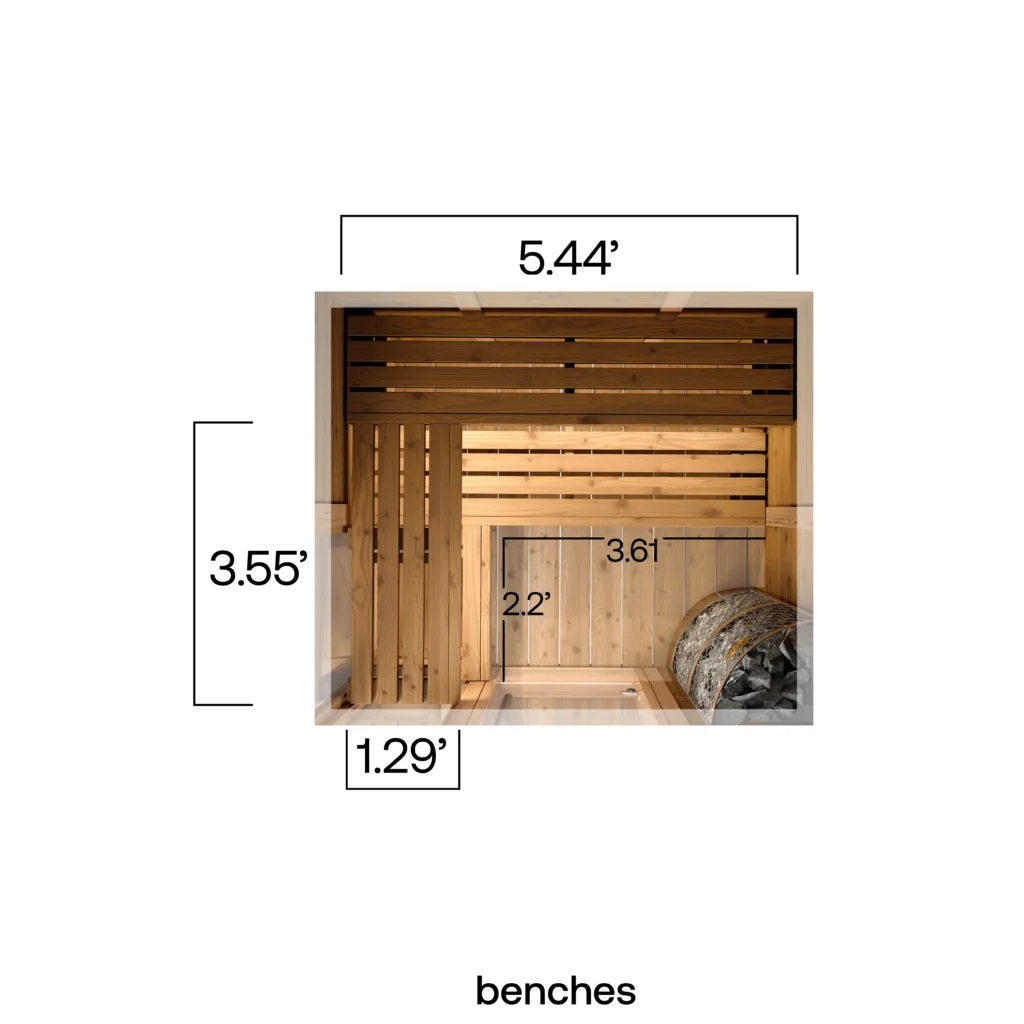 Sheep’s wool insulation keeps this sauna cozy, sustainable, and non-toxic. It naturally resists mold growth, with an R-value four times higher than any other on the market.